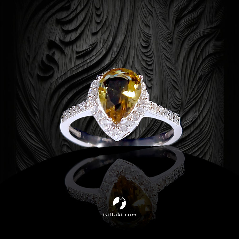 925 ayar gümüş, rodyum kaplama, ışığa göre renk değiştiren taşlı, 10mmx8mm, damla sultan tektaş yüzük.