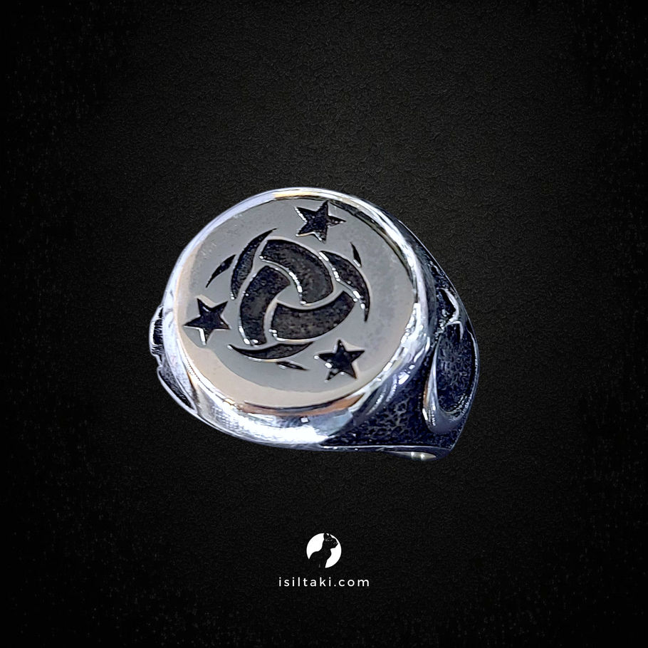 925 ayar gümüş, yanlarında Ayyıldız, 3hilal ve Asena figürlü, Ebed Devlet Müddet yüzük.