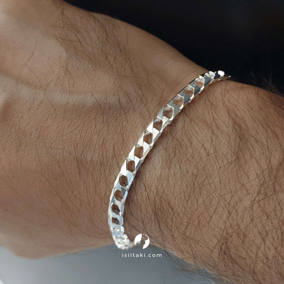 925 ayar gümüş, 5mm 21.5 cm, ithal, İtalyan köşeli gurmet zincir bileklik.