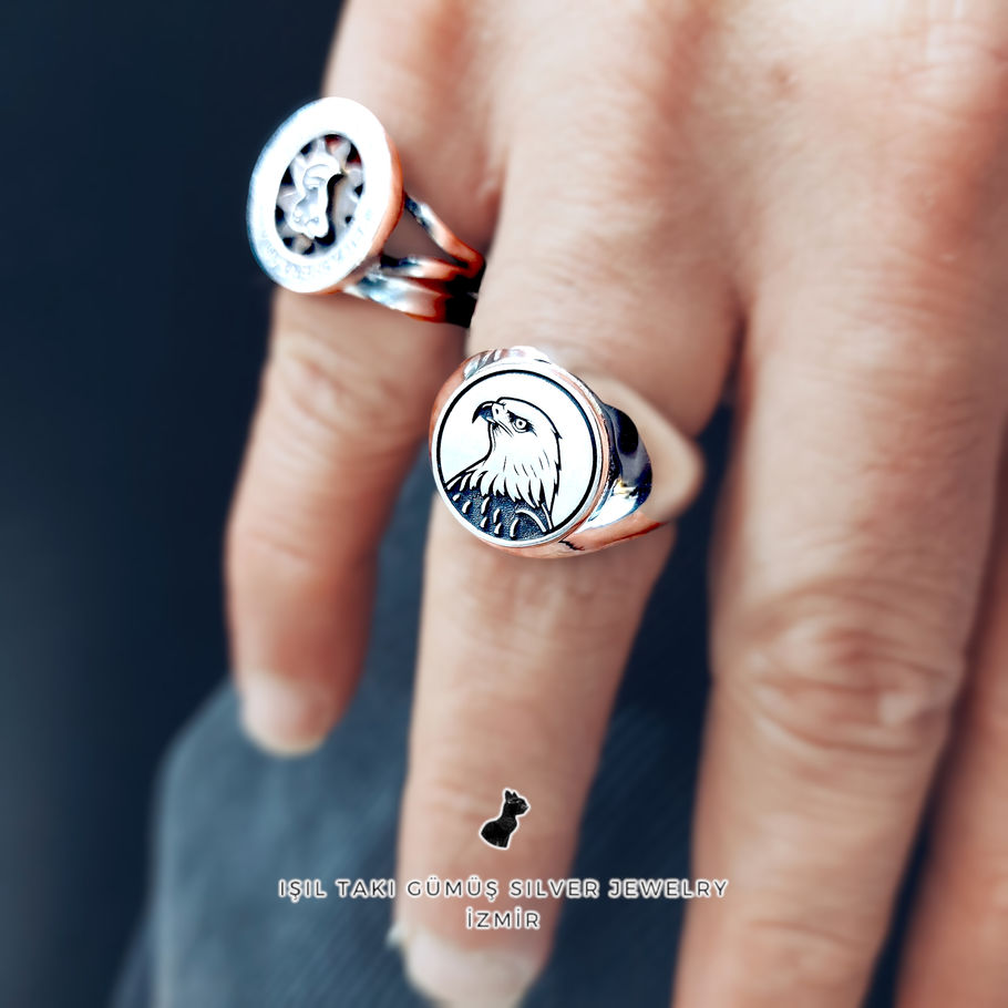 925 ayar gümüş, kartal yüzük.