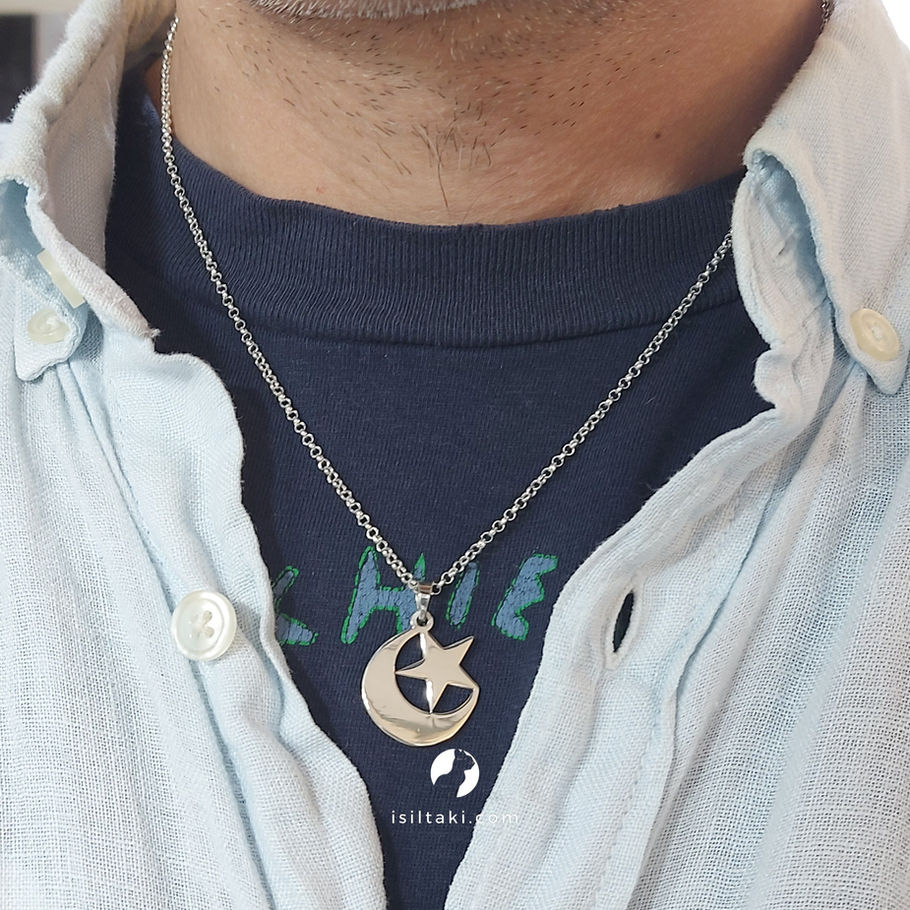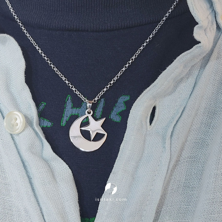Osmanlı imparatorluk nişanlarından ilham aldığı anlaşılan bu ayyıldız formu, dönüp dolaşıp güzelliği ile bizi cezbetti. Serpico sitilinden esinlenen Ayyıldız Kolyemiz bağımsız ve özgür tarzınızı tamamlayacak.